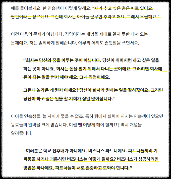 HYBE 연습생이 받는 진로직업 상담