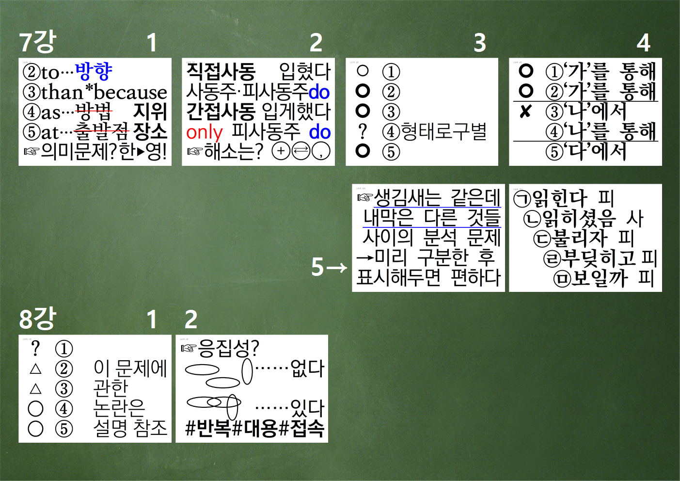 제가 한 주 간 학교를 나오지 못하게 되어 부득이 이렇게 수업을 대체합니다. 이 수업(적용학습 7~8강)의 오디오, 스크립트, 판서는 블로그에도 게시해 놓았습니다.